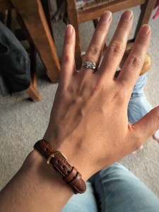 We realised all three children had fallen asleep! Major win!! We decided to get out of the car and enjoy the quiet. “I’m just going to look up here” says I heading for a bunch of trees that resembled a scene from the film Twilight (ya know the one where vampire dude is all shiny and stuff), “can I borrow you a minute first?” Says M. “Erm sure” says I, a little confused. I turn around and there’s M stood in the woodland clearing holding a box, “I’ve got something for you”. Cue confusion, excitement, bewilderment! I won’t embarrass M by detailing the speech, but let’s just say a lot of thought went into it! How well M knows me! He picked the forest (my fave place) to propose on the first day of Autumn (my fave season) and gave me a ring with leaves on it to reflect my love of nature. Oh, and had it made with ethical diamonds! What a guy!!